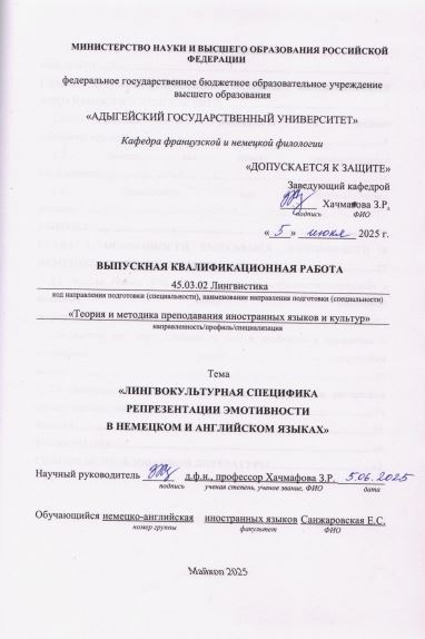 Лингвокультурная специфика репрезентации эмотивности в немецком и английском языках