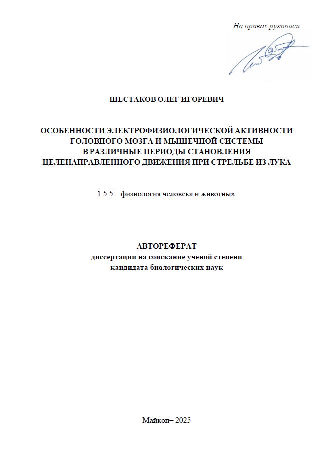 автореферат, активность головного мозга, мышечная система, стрельба из лука, движения при стрельбе из лука