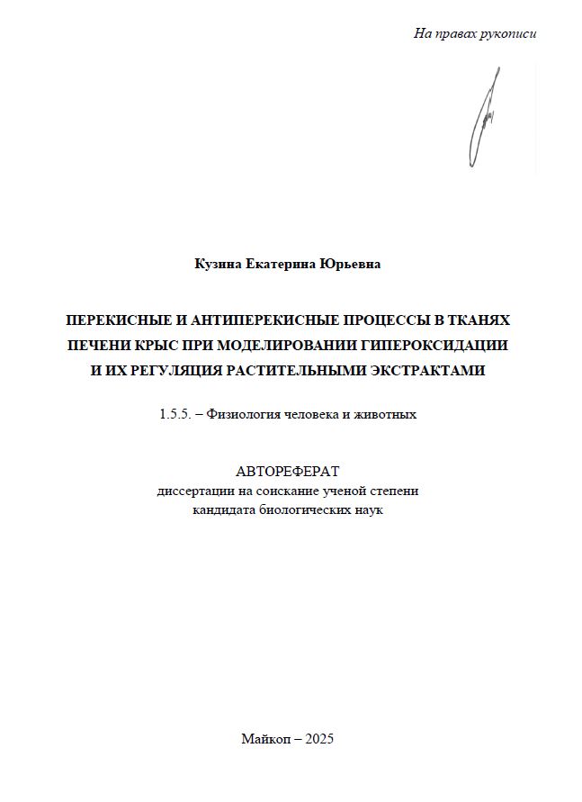 автореферат, свободно-радикальные процессы, патогенетический механизм, воздействие свободных радикалов на крыс, функциональные нарушения печени крыс, растительные экстракты, комплекс природных антиоксидантов, организация исследования, методы исследования, результаты исследования