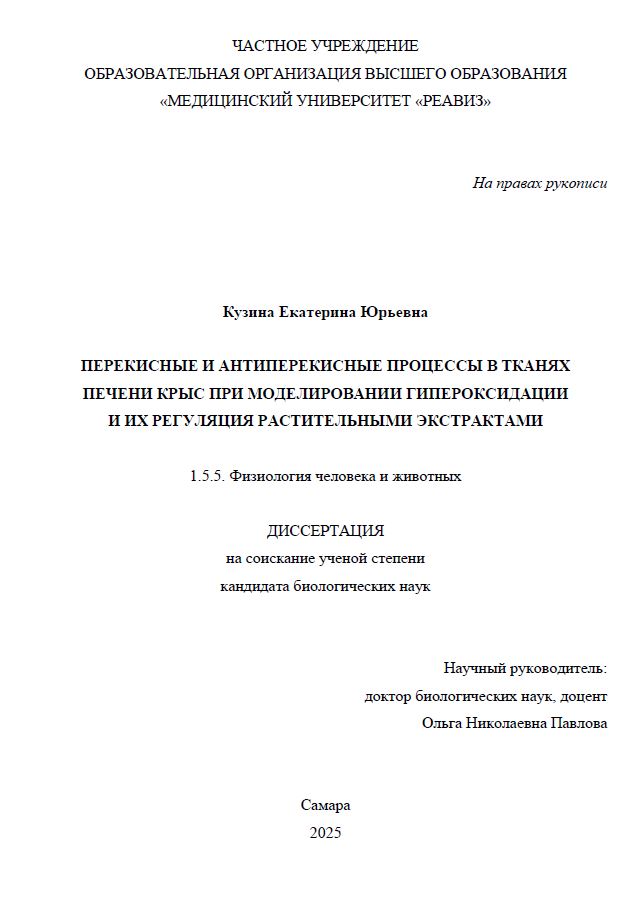 диссертация, свободно-радикальные процессы, патогенетический механизм, воздействие свободных радикалов на крыс, функциональные нарушения печени крыс, растительные экстракты, комплекс природных антиоксидантов, организация исследования, методы исследования, результаты исследования