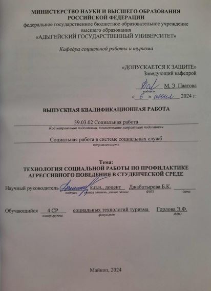 Социальной работы и туризма